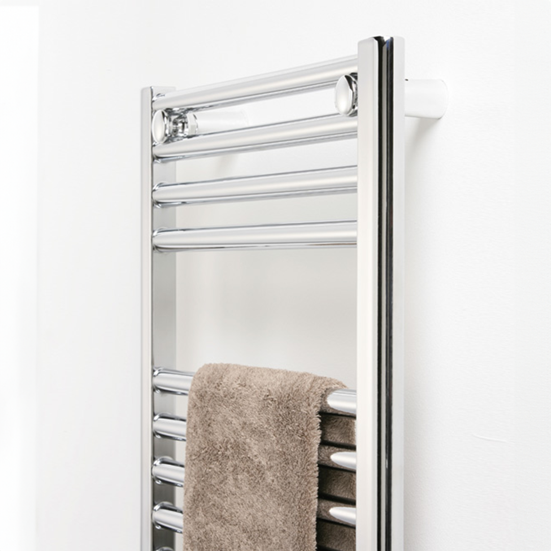 El toallero Zeta está diseñado para colgar toallas y calefaccionar baños o toilettes.